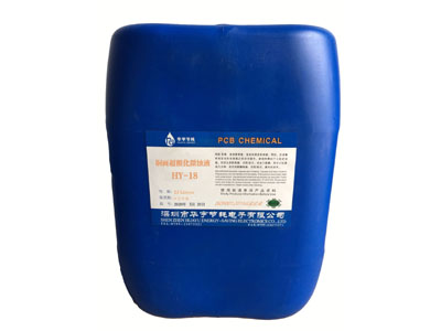 铜面超粗化微蚀液 HY-18 是我司开发的一种新型有机型铜面超粗化微蚀液 ,该产品工艺简单,可使铜面形成一层外观均匀的超粗化表面,大幅增加铜面的比表面积,显著提高铜面的结合力,非常适合精密电路板干湿膜和感光阻焊的前处理。
